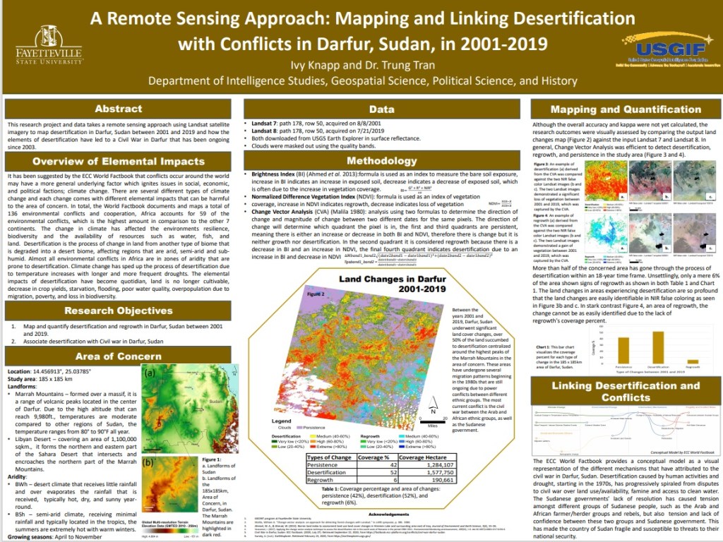 A Remote Sensing Approach: Mapping and Linking Desertification with Conflicts in Darfur, Sudan, in 2001-2019 – Ivy Knap – Fayetteville State University