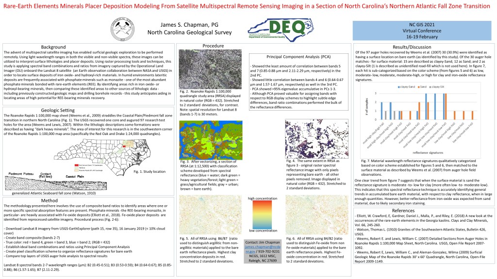 Rare-Earth Elements Minerals Placer Deposition Modeling From Satellite Multispectral Remote Sensing Imaging in a Section of North Carolina’s Northern Atlantic Fall Zone Transition – Jim Chapman – NC Geological Survey