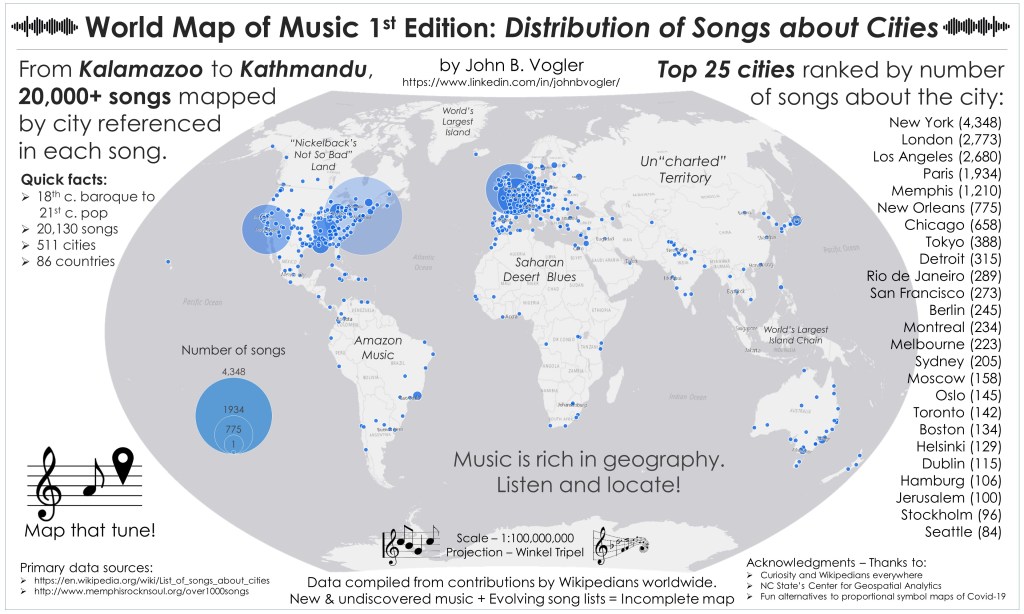 - John Vogler – NCSU: World Map of Music 1st Edition: Distribution of Songs about Cities